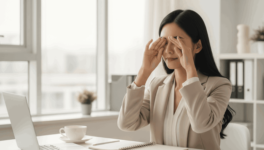 Peregangan ini bisa membantu meredakan kelelahan mata akibat terlalu lama menatap layar.