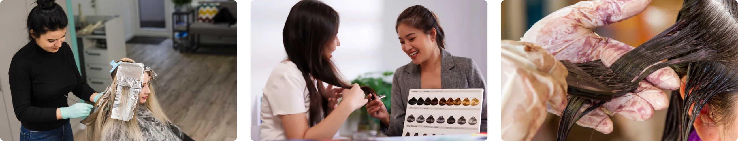 Pewarnaan profesional yang menyempurnakan penampilan, sesuai warna kulit dan gaya pribadimu. Dengan produk berkualitas dan teknik ahli, warna rambut terlihat natural, vibrant, tahan lama, dan rambut tetap sehat.